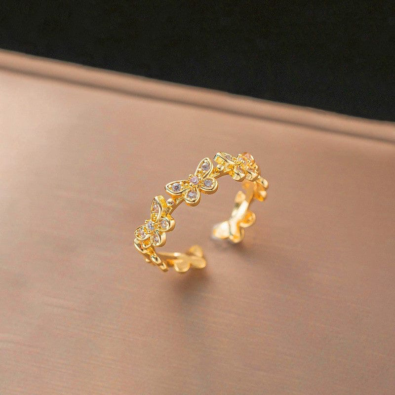 Gold Plated Anti Tarnish Stainless Steel Butterfly Themed Adjustable Finger Ring