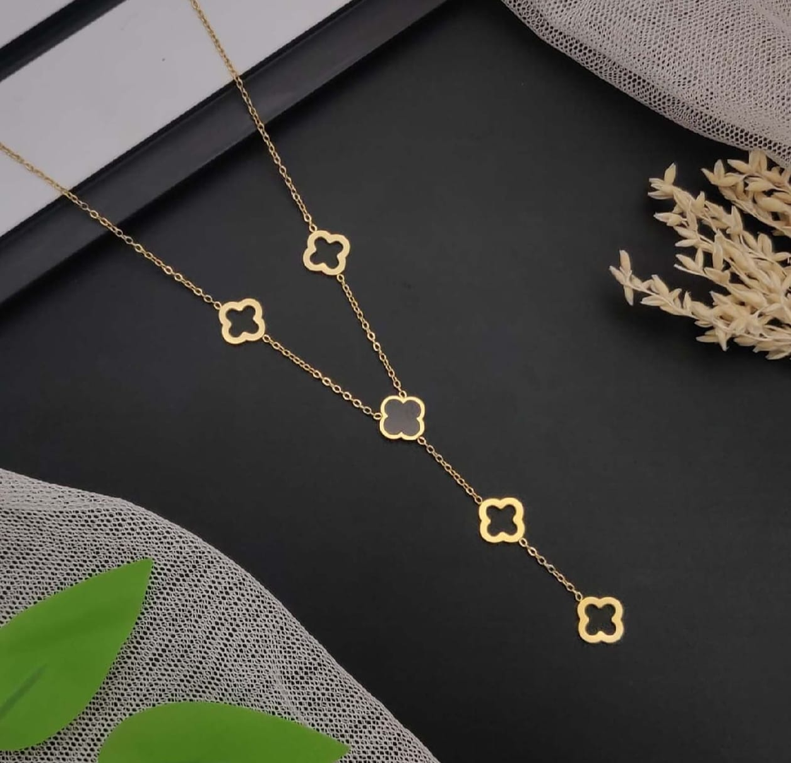 Anti Tarnished Elegant Clover Long Chain Anti Tarnish | 18K Gold Plated | Stainless Steel | Skin Friendly | Waterproof | Best to gift 🎁