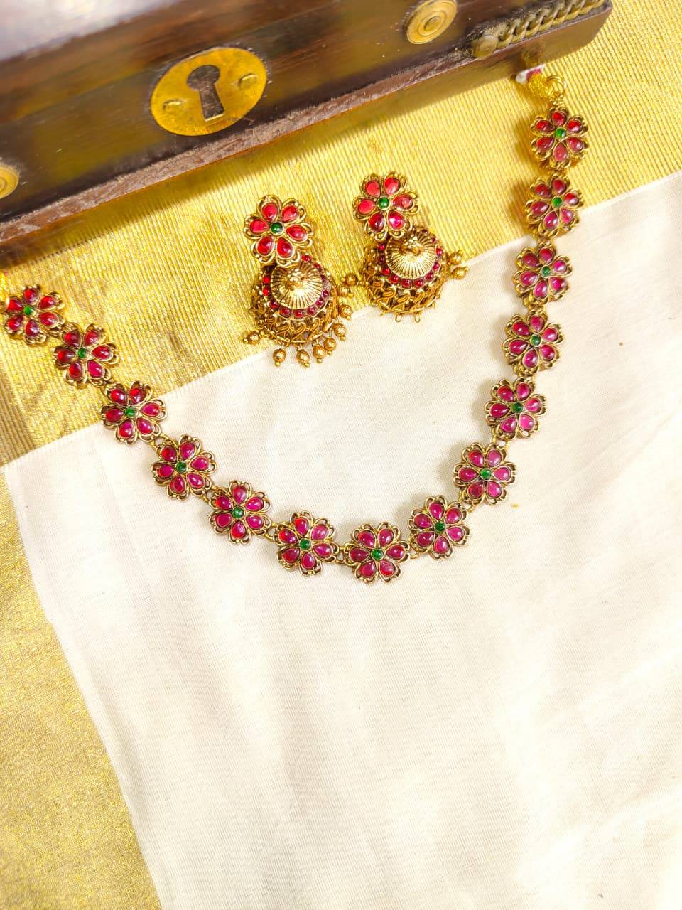 Floral Ruby Necklace with Jumka Suitable for All Occations Best to Gift