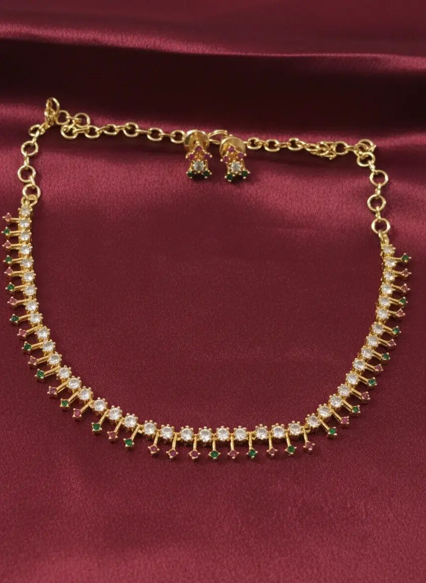 Premium Quality Micro Polish Simple AD necklace set Elegant Traditional Wear With Sarees and Salwars Suitable or Kids and Girls Best To gift