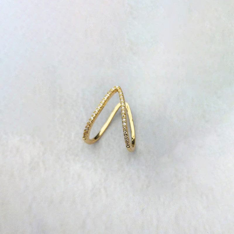 V Shaped CZ Studded Adjustable Finger Ring-Gold - ABDR3022