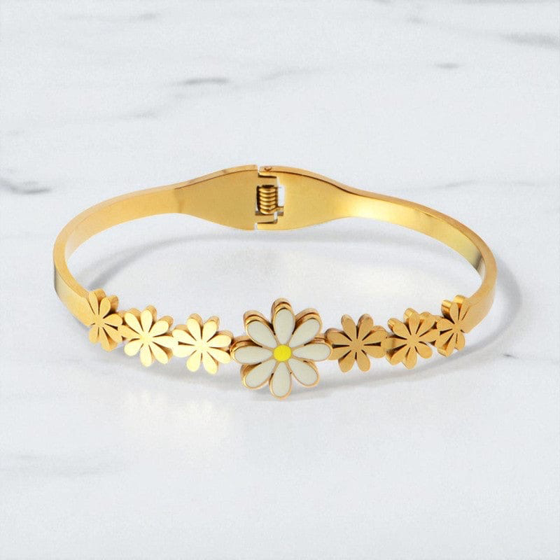 Discover the Elegance of Our White Floral Themed Anti Tarnish Bangle Style Bracelet - GOLD (ABDB2024)